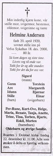 Nålevende slektninger - siden er sperret p.g.a personvern - kan få tilgang ved å kontakte Harald på sms 90 19 68 66.